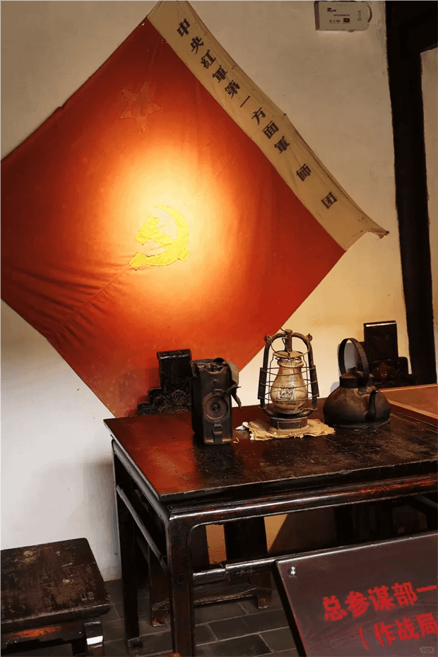 纪念馆所在的丹桂村,完整保留了当年的中央红军总部旧址以及领袖故居。步入其中,简陋的居所、古老的马灯、斑驳
