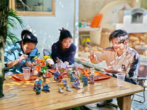 花,品过咖啡,不妨转入手作工坊,亲手捏一只拙朴可爱的瓦窑猫,或拓印一幅充满祈福意味的甲马,让古老技艺在指