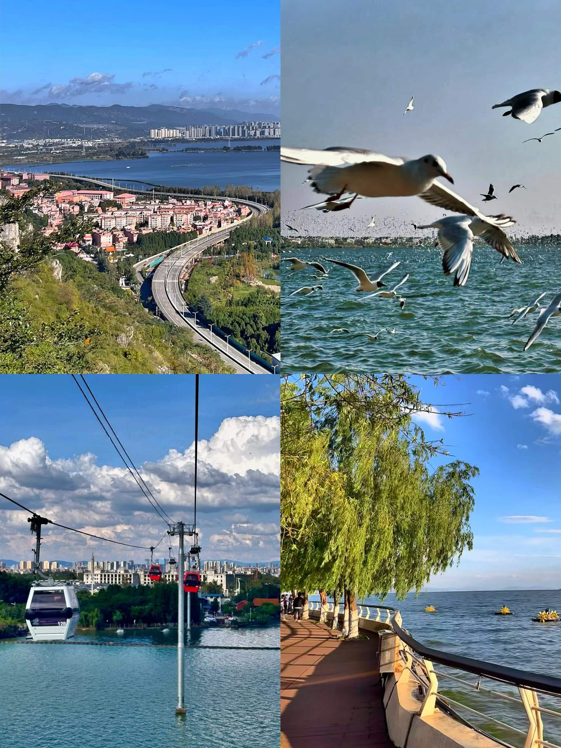 滇池海埂公园:海鸥的季节是11月-3月,缆车建议去坐坐,在山顶俯瞰城市也很震撼!