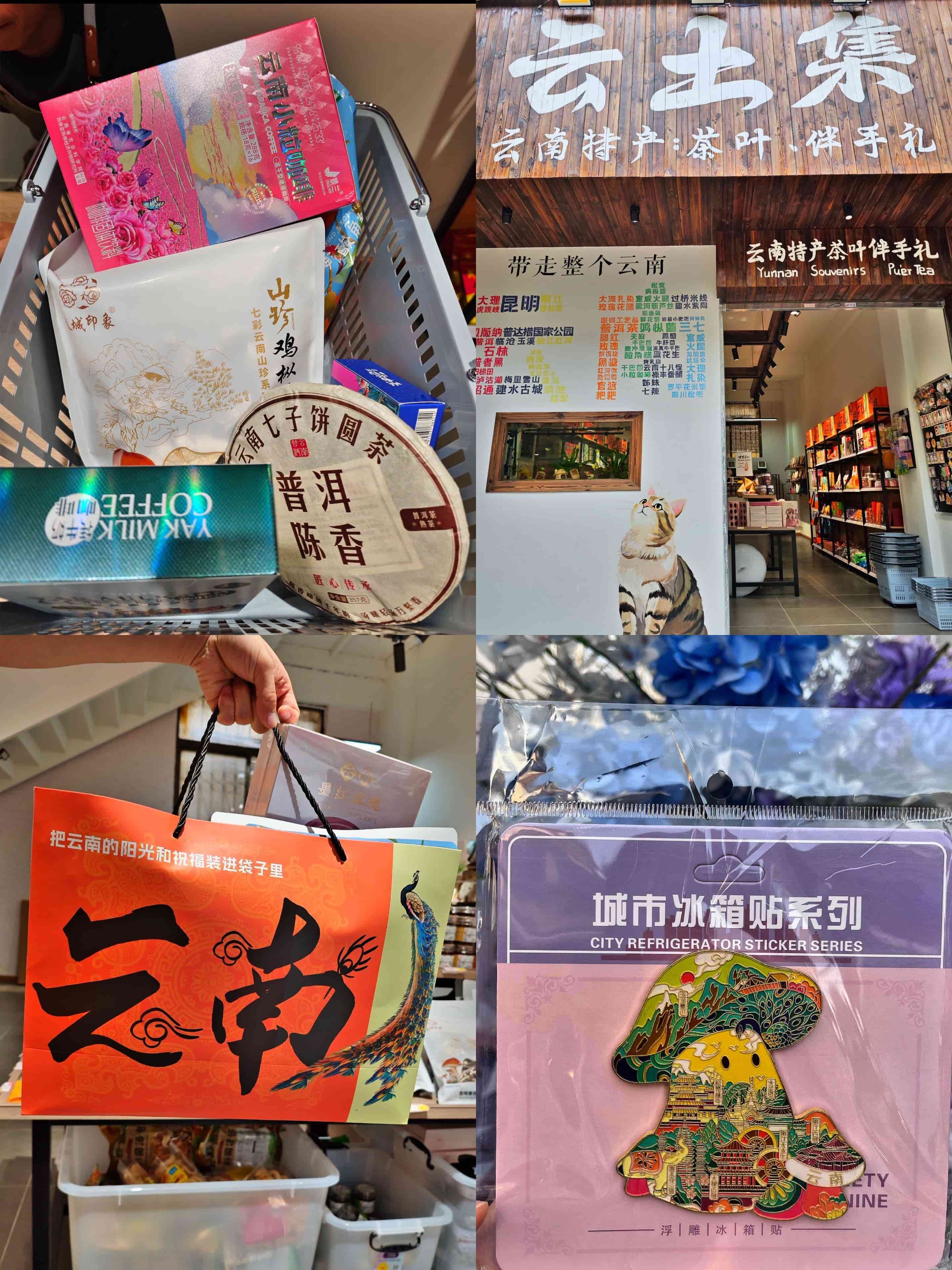 昆明老街附近的云南伴手礼土特产!!咖啡、冰箱贴、鲜花饼、菌汤包、普洱茶性价比高而且东西都有保证,还可以邮寄~