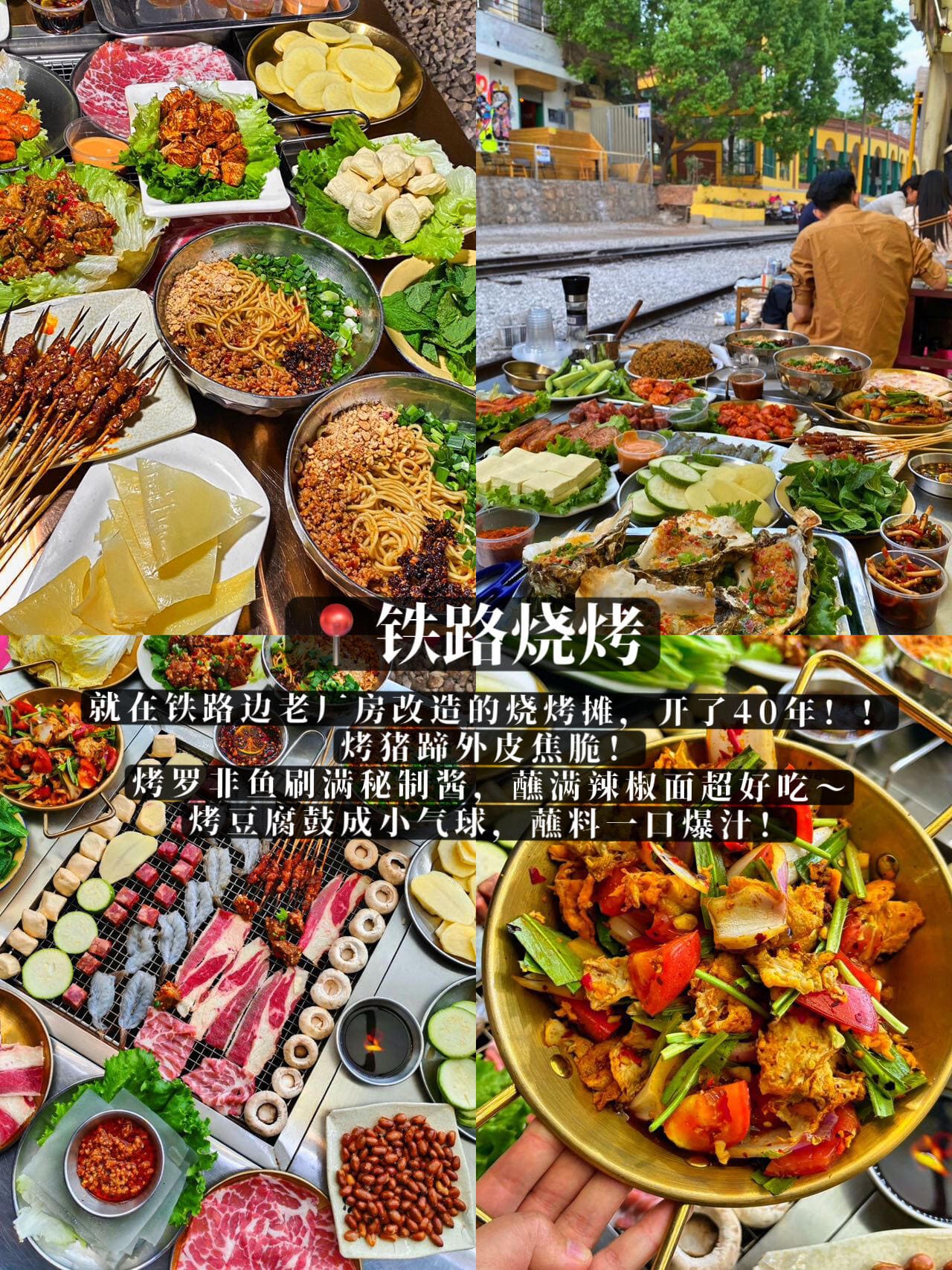 就在铁路边老厂房改造的烧烤摊,开了40年!烤豆腐鼓成小气球,蘸料一口爆汁