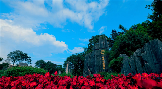 间,沉睡了一冬的石峰便被春风唤醒,五颜六色的鲜花漫过嶙峋石骨,油菜花的金浪翻涌在喀斯特大地上,这片见证了