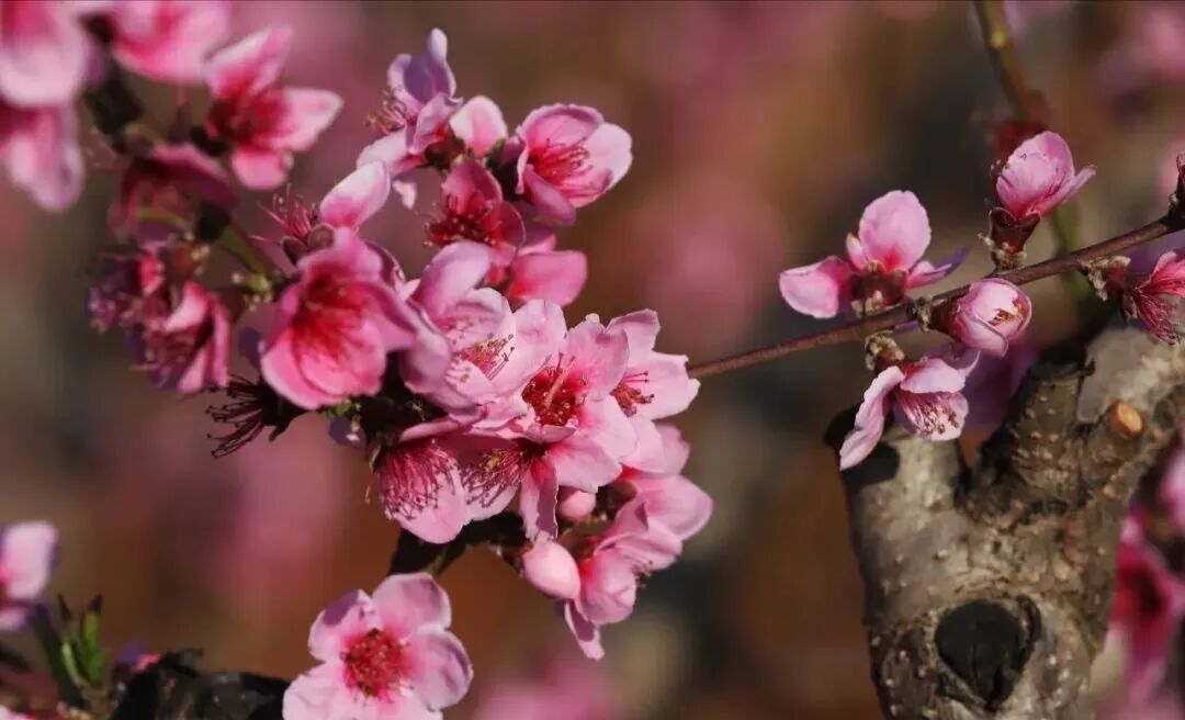 深红、浅粉的桃花层层叠叠